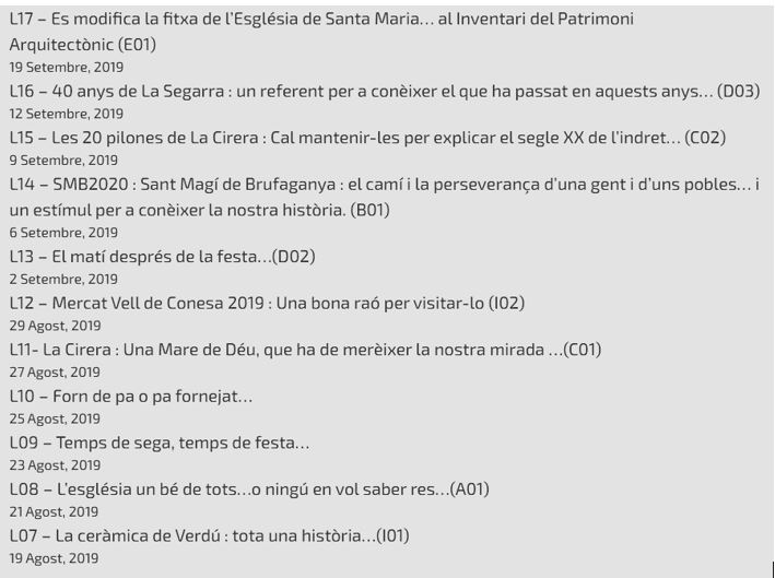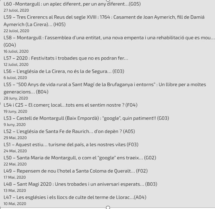 Esperem poder continuar, amb moltes mes entrades i que aquestes ens ajudin a dibuixar el coneixement del nostre passat, la realitat del nostre present i ajudar a definir entre tots el millor futur.