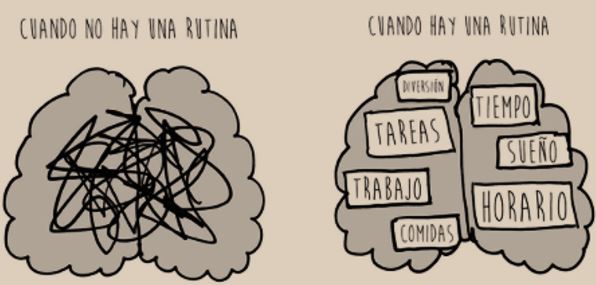 Al llarg del dia tenim rutines assumides : el despertar-nos a una hora, el esmorzar a casa, el rentar-nos i vestir-nos… ; depèn de l’edat els més joves tindran la rutina d’anar a l’escola a una hora determinada, de tenir estructurat el matí en diferents matèries, i en un horari d’esbarjo, una hora de dinar (a casa o a l’escola…).