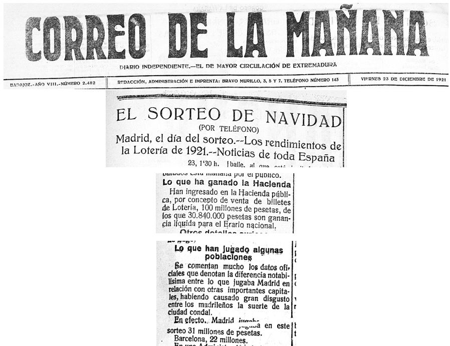 DIARIO DE LA MAÑANA (Badajoz), edició del 23 de desembre de 1921 – Num. 2.482 :