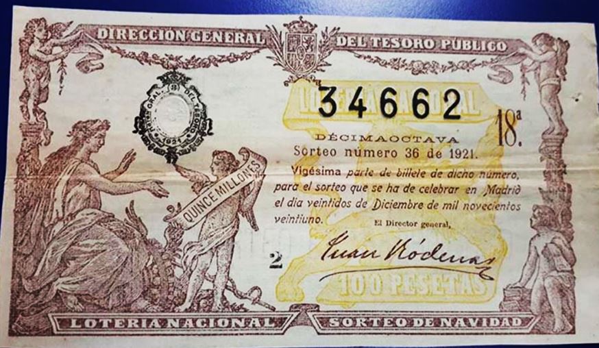 El sorteig del 1921, tenia 50.000 números diferents i, de cada numero, es feien vint parts de 100 pessetes (coneguts també com vigèsims); per tant d’aquest numero s’en van editar 20 parts, de les quals 6 son les que es van comprar (a Barcelona) per a Santa Coloma de Queralt.