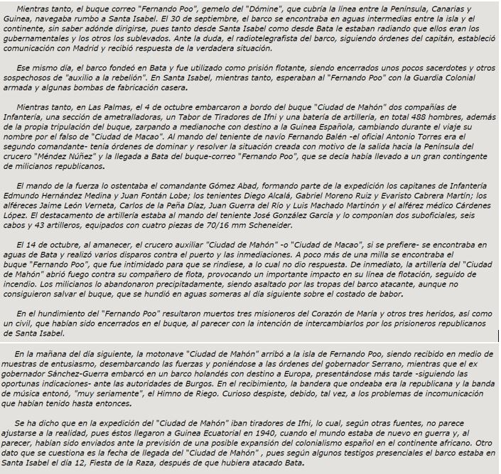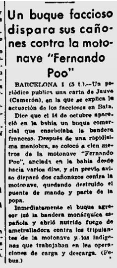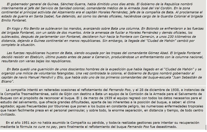 Analitzant, en la distancia temporal d’aquests 85 anys transcurreguts, l’enfonsament del “Fernando Poo” podria considerar-se com una errada tàctica o de valoració; la pèrdua d’aquest vaixell, amb menys d’un any de navegació i amb les matèries primeres ja enmagatzemade. Només tindria sentit l’atac des d’un punt de vista militar i l’objectiu de l’invasió, podia implicar també la pèrdua del vaixell i/o d’altres infraestructures bombardejades. He de suposar la hipòtesi de l’anterior intent de invasió, frustat, ara amb més forçes (humanes i de recursos) voldrien evitar que sortis malament, quan, amb una informació més acurada, haguessin lograt el seu objectiu de forma més segura.