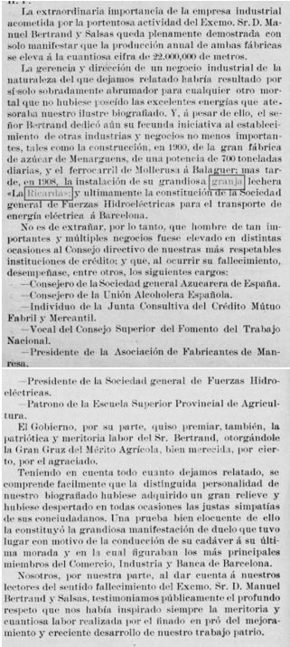 Reproduim l’article recordatori que va apareixer a “Cataluña Textil – Revista mensual hispano-americana de industrias textiles y auxiliares” edición de l’any 7, número 64, de gener de 1912, a la página 19 :