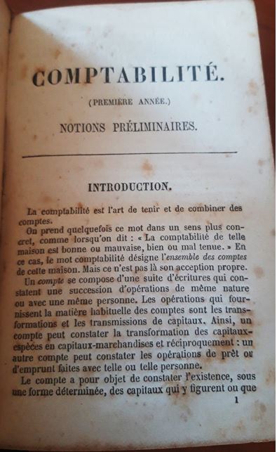 Al 1870, França estava en guerra amb Prussia, una guerra que és va lliurar al nord, en terreny francés… és el moment en que es va editar aquest llibre de Comptabilitat (Cours de Comptabilité), que seguia el programa oficial d’aquesta matèria; fa temps que el tenia al prestatge, amb la resta de llibres d’un cert interès i, fa una setmana, el vaig fullejar novament.