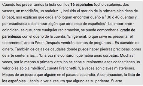 Recordo què. als primers anys de treballar al banc, apareixien a la premsa llistats de saldos, i dels titulars, (cada Banc o entitat els publicava) com a darrer pas abans del seu ingrés al Banc d’Espanya; aquests comptes eren sotmeses, regularment, al cobrament de comissions de manteniment i, els saldos, anaven minvant any rera any…