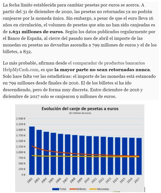Un 3.2 % dels bitllets i monedes fisiques de pressetes en circulació al 31 de desembre del 2001, so h’ha bescanviat durant el periode de 20 anys, que va finalitzar el 30 de juny de 2021 de forma definitiva.