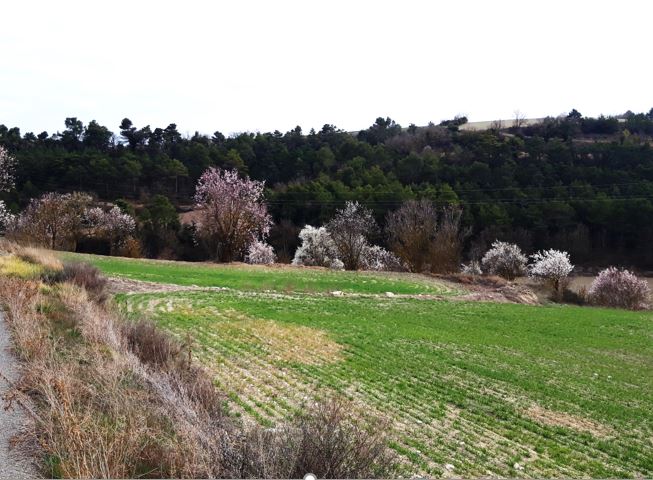Els ametllers i altres arbres fruiters a la comarca del Segrià, han estat plantats en camps de forma ordenada i, en el moment de la floració, formen visualment imatges monocromàtiquas de gran bellessa, què en els darrers anys son motiu d’atracció i visita.