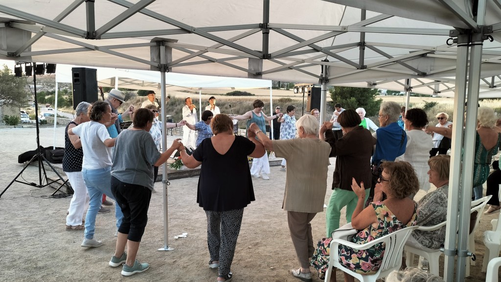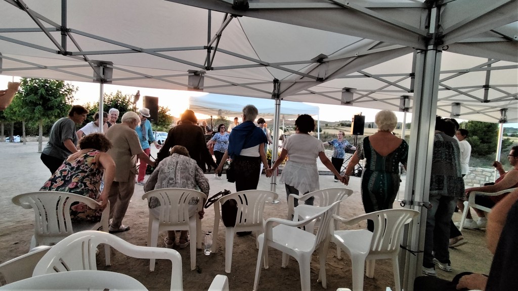 Al llarg de l’actuació, l’engrescament i la participació va en augment, i quan enceten la musica d’una sardana, hi ha prop d’una trentena d’assistents que si apunten a una rotllana improvisada, però participativa, al igual que quan dos dels cantants s’endinsen entre el públic tot demanant la seva participació en les darreres cançons… No hi va mancar, a la mitja part, el rom cremat propi d’aquestes actuacions, i que dona i arrodoneix aquest punt d’ambient propi de les melodies que escoltem…; al final, amb el sol amagant-se darrera Santa Coloma, en un capvespre agradable, tots vàrem retornar, amb la satisfacció d’haver gaudit i compartit una estona, com a inici d’un estiu que tot just comença…