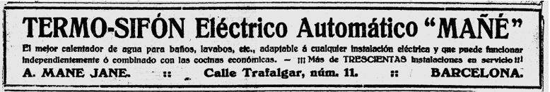 També en una altra edició de la Vanguardia, hi ha anuncis sobre el “termosifó”; aquest del diumenge 31 d’agost de 1919 (pàg. 17), ens diu que es un escalfador d’aigua, tant per cuina com per aigua sanitària :
