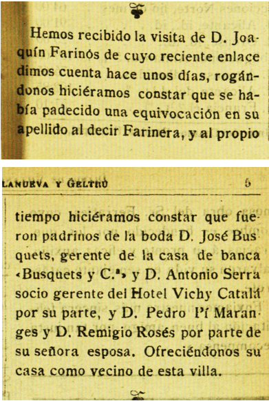 1907 : En aquesta ressenya del Diari de Vilanova, es ratifica qèe en aquella data el Sr. Josep Busquets ja estava com a Gerent de la casa de Banca “Busquets y Cia”, confusió que es produeix en una posterior ressenya de 1923 (Imatge 2).