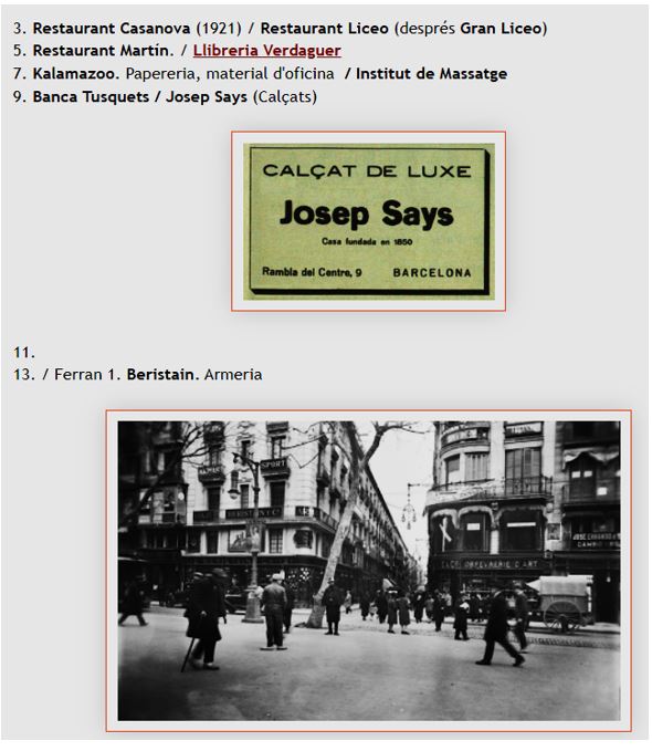 Informació : barcelofilia.blogspot.com/2015/10/la-rambla-botigues-i-comercos-anys-1920s.htm