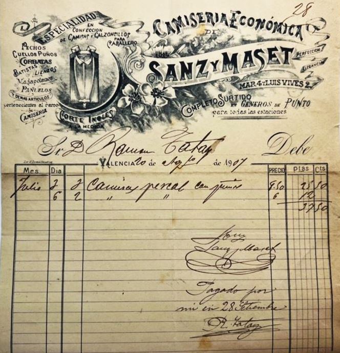 Analitzarem la factura, de fa un segle, com a element col.leccionable ja què, avui en dia, la majoria de factures és troben normalitzades, una gran majoria són emeses per ordinador o és trameten de forma electrónica.