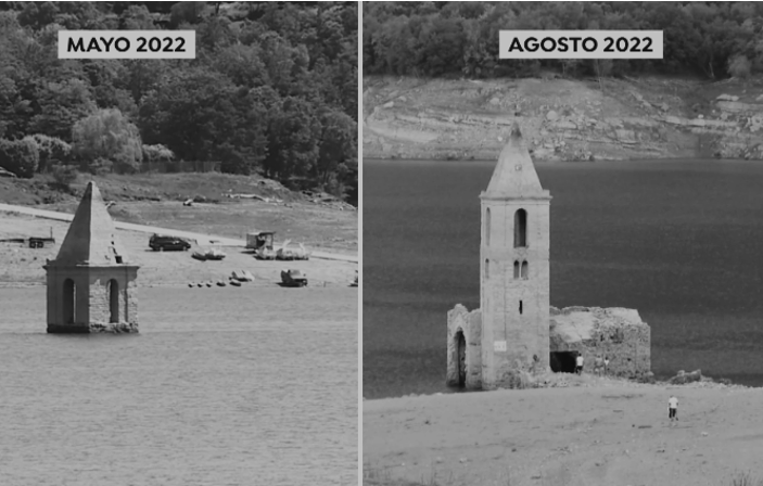 La imatge del campanar de Sau ens diu visualment l’estat del mateix; realment quasi no s’hauria de veure amb el pantà ple