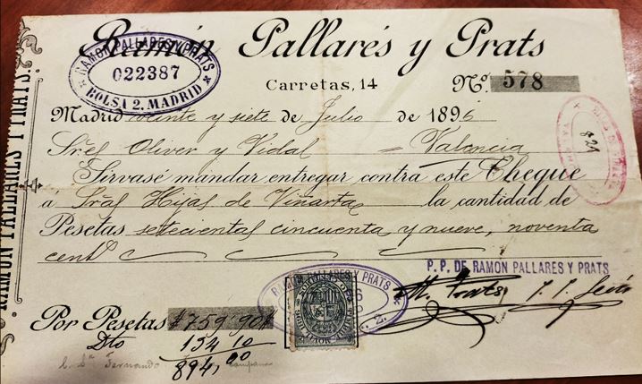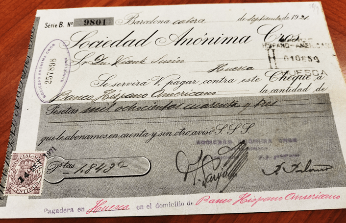 d) Si el client ingresava un taló d’una Oficina d’arreu, aquest era enviat a la oficina de pagament, juntament amb una nota que tenia funcions comptables entre les dues entitats (normalment eren comptes uniques entre una entitat i altra).