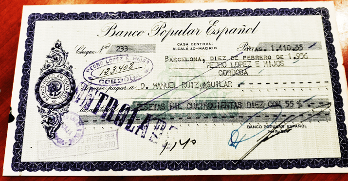 El xec, es una ordre de pagament, per escrit, emesa per el titular dels Fons, perquè una tercera persona (generalment el banc), faci efectiu l’import que hi consta, amb les limitacions que hi posa l’emissor.