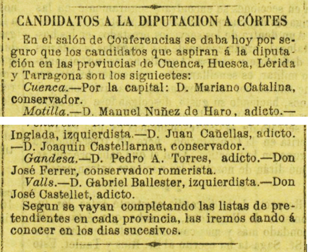 1886 : Presenta la seva candidatura a les Corts (Imatge 6 i 7).