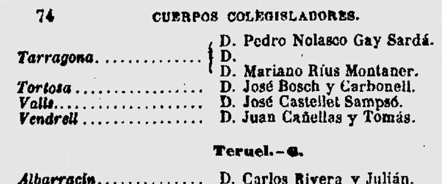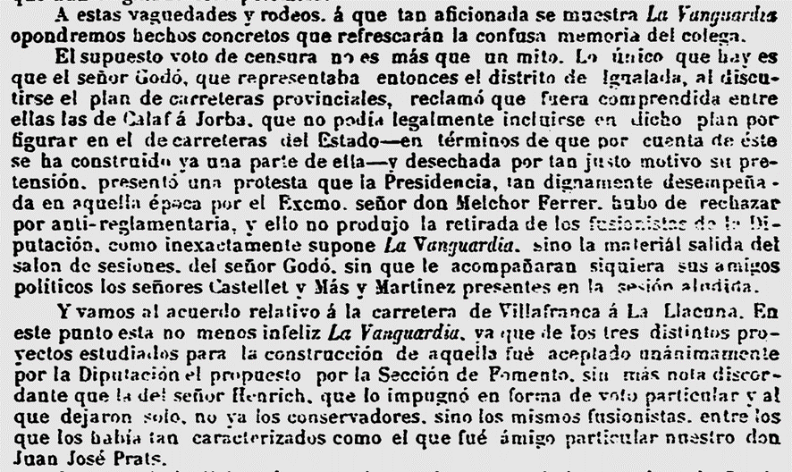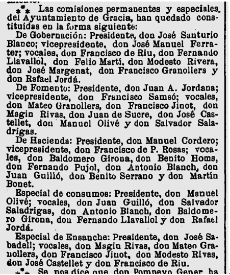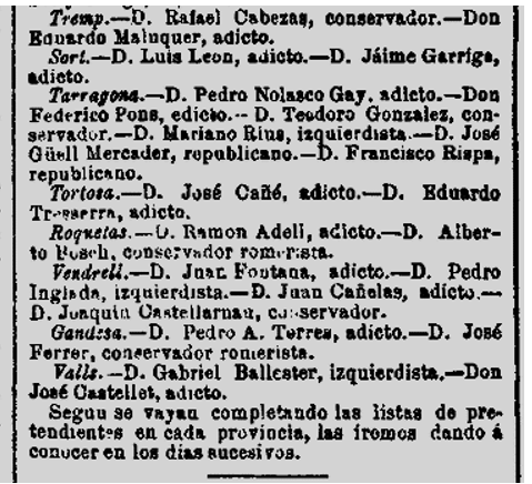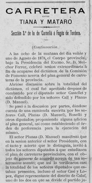1884 : Consta com a Diputat per al Districte de Valls (Imatge 1); té despatx a Barcelona, carrer Raurich 3 (Imatge 2), i es escollit membre de la Comissió Organitzadora per promoure una exposició permament a Madrid de productes (Imatge 3),