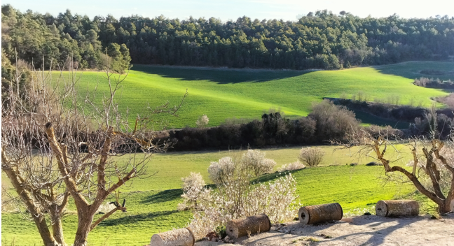 També, a la nostra Baixa Segarra, tenim en determinades èpoques de l’any, el paisatge de l’evolució dels camps de cereal, que els van acolorint, del verd intens, al degradat beig de quan fa el canvi, i la coloració del daurat enfosquit, proper a la sega; colors què, al llarg del dia, son canviants i què amb el vent formen sensacions visuals, con una onada…