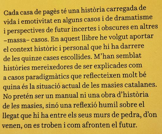 La masia es un tot : és l’edifici, una forma de fer i de vida, una forma d’autoabastir-se, de reciclar, de conviure varies generacions…d’una forma de viure i veure la vida.