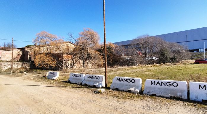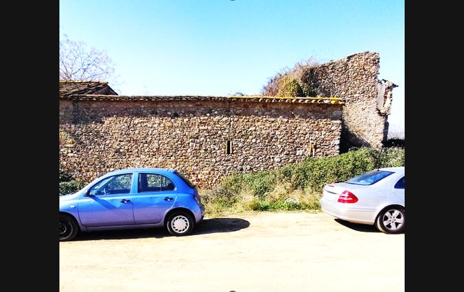Imatges de la Masia, al costat mateix del magatzem logístic de “Mango”, i amb un aparcament al costat (amb la fotografia del detall de la paret que figura al llibre).