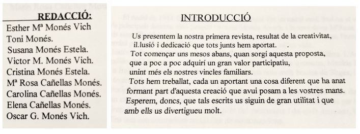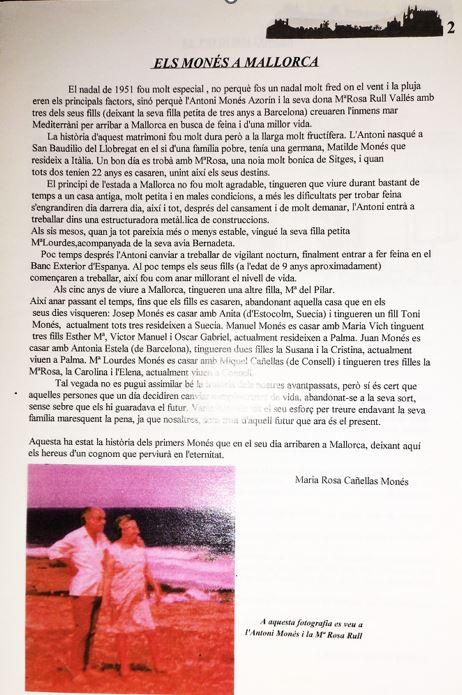 La Maria Rosa Cañellas i Monés, va fer una ressenya d’aquesta història familiar, a la publicació de la trobada, de l’arribada a l’illa a comencaçaments de la decada dels anys 50 del segle passat, i de l’esforç per tirar endavant la familia…