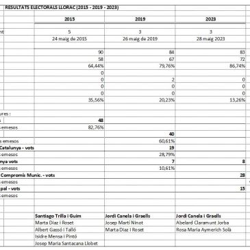 L185,,- Els resultats electorals a Llorac (28.05.2023)