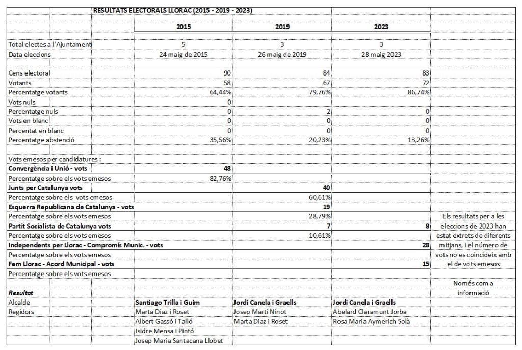 L185,,- Els resultats electorals a Llorac (28.05.2023) Publicat el 1 Juny, 202330 Mai, 2023 per fmones Compártelo: Share on X (S'obre en una nova finestra) X Comparteix al Facebook (S'obre en una nova finestra) Facebook M'agrada S'està carregant... Relacionats