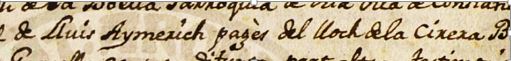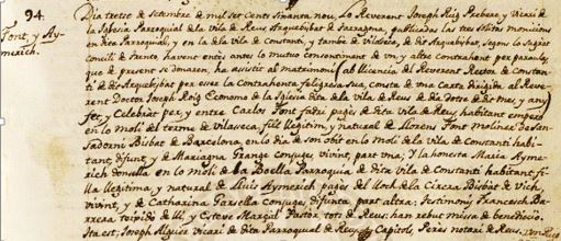 Maria Aimerich Garcella, filla de Lluis (pages de La Cirera) i de Caterina (veina del moli de la Boella, a Constanti) què és va casar al 1769, amb Carles Font Granja(e) (pages de Reus, habitant a Vilaseca).