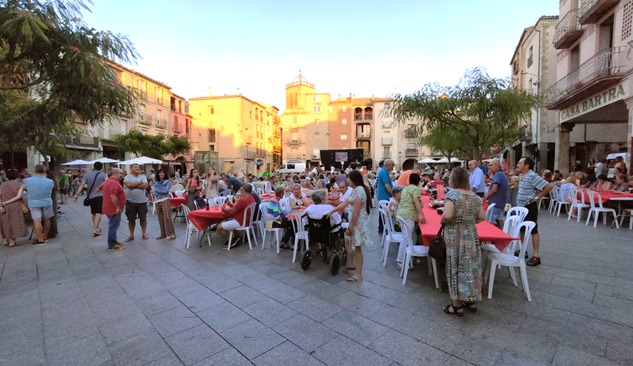 La festa va començar, a mitja tarda, al sons d’una cobla, que va engrescar a participar en les rotllanes que es van fer per les diferents peces; en aquest cas, va ser la cobla “Ciutat de Girona” qui ens va acompanyar, aprofitant les ombres de la Plaça Major, en una tarda calorosa.