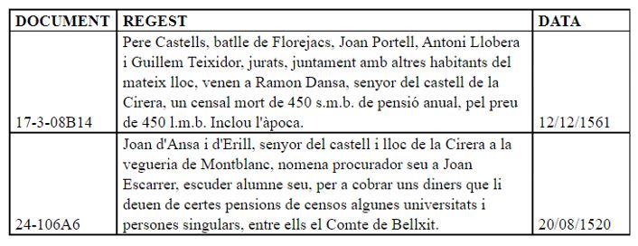Aquesta informació obre la porta a confirmar la presència d’aquesta familia dels D’Ansa (o Dansa), dins la vida de la Cirera dels segles XV i XVI. És cert què són dos fets puntuals, però tenen la ratificació que, aquesta familia, eren “senyors del Castell de La Cirera”.