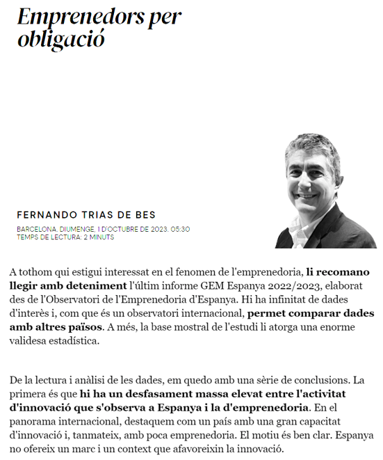 Coincidim amb en Fernando Trias de Bes, amb el contingut del seu article publicat a l’edició de dilluns, al digital “elnacional.cat”.