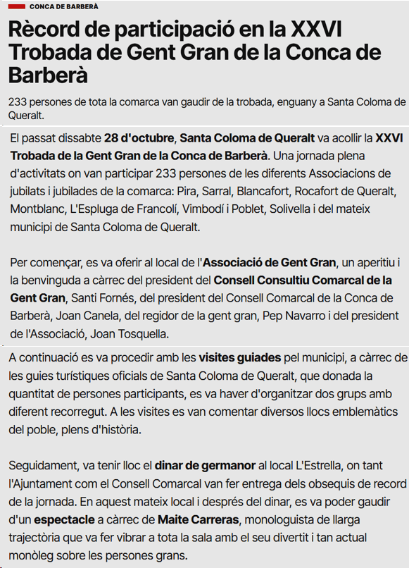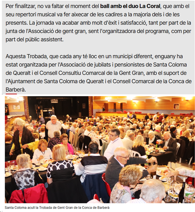 Ressenya de la Trobada de la Gent Gran a Santa Coloma de Queralt