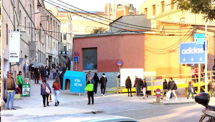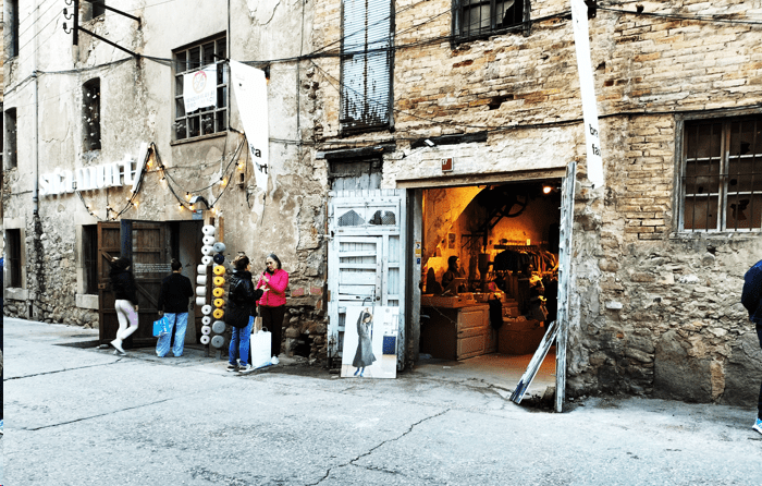 Enmig de carrerons i espais oberts, una sèrie de “foodtruck’s” distribuïdes estratègicament ajuden al descans i/o a l’àpat més lleuger per continuar el camí. Un recorregut que permet descobrir façanes, edificacions, carrerons…que ens transporten al temps on, l’activitat fabril, devia ser molt activa, i què és un passeig històric per resseguir… Les botigues, si es pot dir, les naus atapeïdes de producte, són un seguit de persones, removent, cercant la talla, o encuriosint-se amb tot el que si troba.