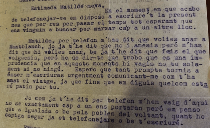 Fa unes setmanes vaig comprar aquesta carta, d’un portal col·leccionista, atenent la vinculació a la Baixa Segarra…; poc en sabem de la història del document i dels seus protagonistes, però m’ha semblat adient comentar-la perquè desprèn la sinceritat i el neguit del moment.
