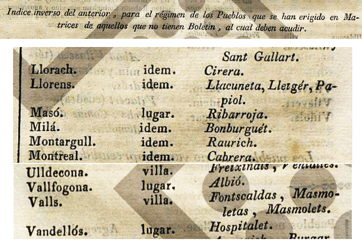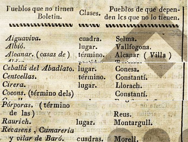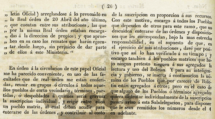 El Butlletí fa esment dels pobles què, per ser petits, o no poder atendre les despeses de l’edició d’aquesta publicació oficial, s’han d’assebentar dels decrets, normes i lleis que els poden afectar i, per aixó, es determina què, cada un dels indrets, tingui assignat un altra que si tingui la subscripció per a la seva consulta i coneixement.