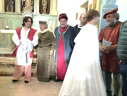 Més tard a l’església, en Jaume Martell i l’equip de “Teatrehistòric”, van oferir una representació singular d“El trobador de la Cirera”, tot destacant els documents inicials de la història d’aquest indret, amb el seu estil pròpi per representar aquests fets, amb la participació d’algun dels assistents donant vida a diferents personatges.
