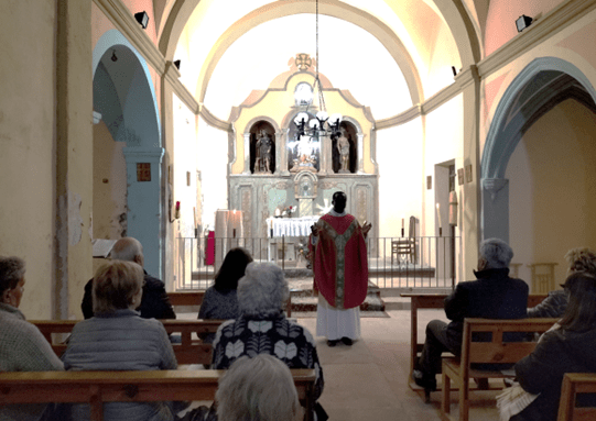 El dissabte següent a la festivitat de Sant Marc, els veins, familiars i amics ens apleguem en aquest indret per a la mantenir i celebrar la festa del nostre patró. El temps aquest any no ha acompanyat, a primera hora, amb vent i fred vàrem fer una sortida etnobotànica, dirigida per la Tatiana Segura Caralt, amb un recorregut per veure i descriure les plantes properes, les seves utilitats i el seu aprofitament. A les 11,00 es va celebrar la missa, oficiada per Mossèn Otaba.