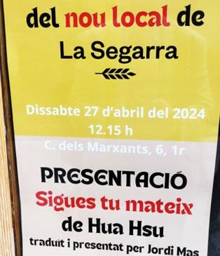 L’obertura d’aquest local de la revista “La Segarra”, és un punt de consolidació de la revista que ha estat testimoni, durant més de 40 anys, del batec baigsegarrenc; un espai que reforça l’activitat al nucli històric, al costat mateix del carrer Major.L’acte es va obrir amb la presentació dels màxims responsables de la Coperal i … More L236,,- Inauguració nova seu de la revista “La Segarra”, Santa Coloma de Queralt – 27 abril 2024…