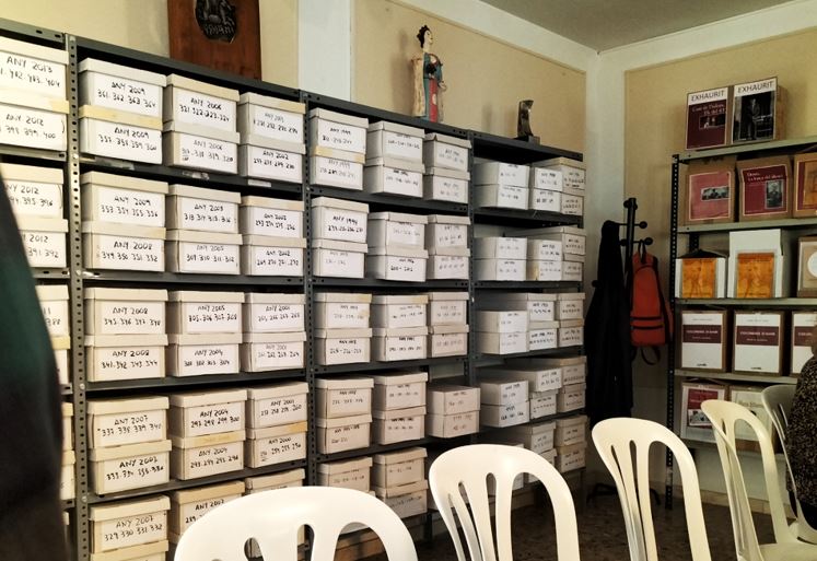 Una de les parets del nou local amb part de l’arxiu…