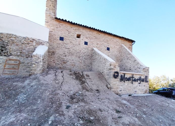 Carrer d’accés a l’església de Montargull, amb la barana del nou mirador…