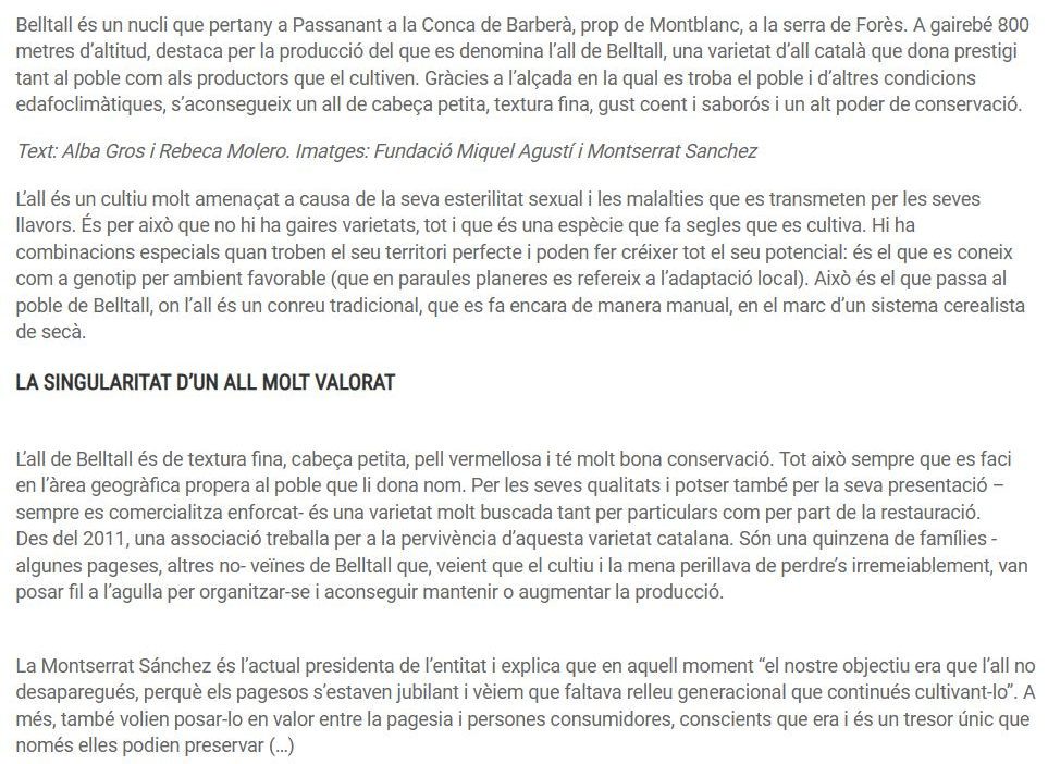 Una part de l’èxit futor de la nostra pagesia i dels nostres productes autòctons, ha de passar per la potenciació de les varietats locals, la recuperació de llavors antigues, la difusió i promoció de les mateixes, de forma que es puguin comercialitzar com a productes diferenciats, i valorats.