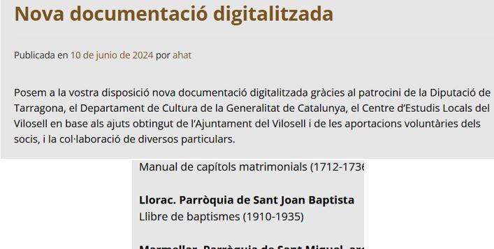 Fa unes setmanes, l’AHAT (Arxiu Històric Arxidiocesà de Tarragona), va publicar la ressenya de les noves documentacions digitalitzades, i consultables en xarxa. Una d’elles, que hem va sobtar, va ser un llibre de Baptismes de Llorac corresponent als anys 1910 al 1935, inèdit fins ara, ja que les documentacions parroquials de Llorac – La Cirera, es van perdre, o cremar, durant la Guerra Civil.