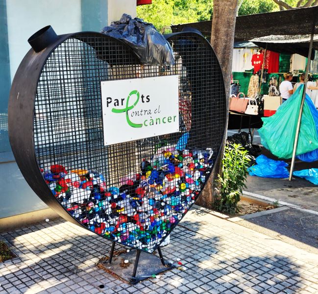 Aquest darrer dimecres, mentre feia la fotografia per acompanyar aquesta entrada hi havia, davant d’aquest cor metàl·lic que recull els taps de plàstic, unes senyores que comentaven no haver portat el taps recollits…