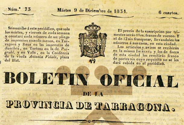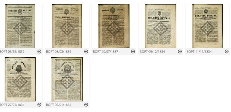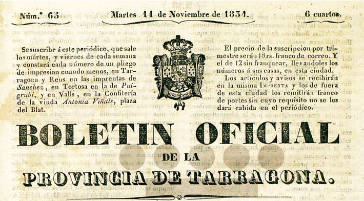 Exemplars del BOPT on hi apareix La Cirera, dels anys 1834 a 1839