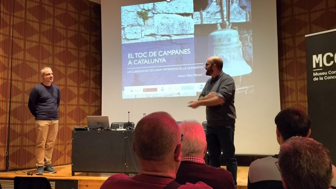 Mes tard, a la sala d’actes del Museu Comarcal, en Xavier Pallàs, campanòleg i Director de l’Escola de Campanes de Joanetes, va fer una xerrada sobre tot el que fa referència a les campanes, al seu disseny i particularitats, les seves vivències, el que representen i la diversitat dels tocs manuals…