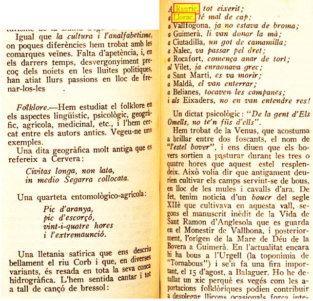Dins d’aquest exemplar del “Butlletí dels Mestres” del dia 1 de novembre de 1935, hi trobem una ressenya que parla de la Conca de Barberá i, especialment, d’una litània o lletania (letania en castellá), paraula que, en una de les accepcions, es defineix com a “una llista i/o enumeració de molts noms, locucions o frases”.