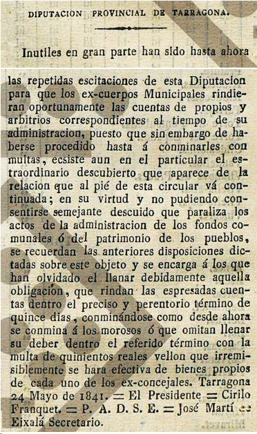 BOPT del 1 de juny de 1841 :