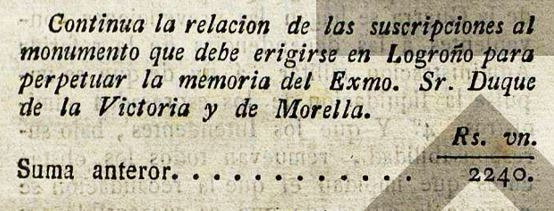 En aquest llistat hi consta el Sr. Francesc de Paula Cirera, en una relació de persones que fan aportacions per a sufragar un monument al Duc de la Victoria a Logronyo.