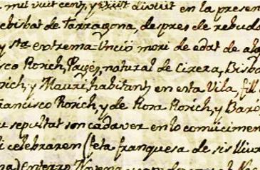 Una troballa puntual, m’ha portat a localitzar la mort d’en Francisco Rosich, de 50 anys, a Clará, actual terme de Torredembarra; segurament els seus pares, en Francesc Rosich i Na Rosa Barò, sí serien de La Cirera, i hauria nascut sobre l’any 1768. Les úniques dades que ens aporta l’acta és que va ser pagès, … More L284,,- Francesc Rosich i Baró (La Cirera 1768? – Clará-Torredembarra 1818), i els seus fills…