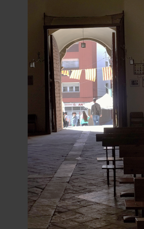 La trobada al carrer, des de l’interior de l’església de Sant Miquel, arcàngel (Os de Balaguer)