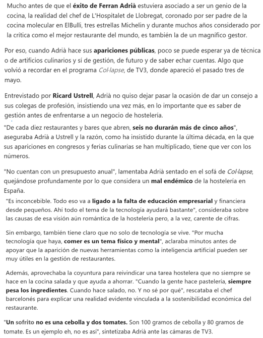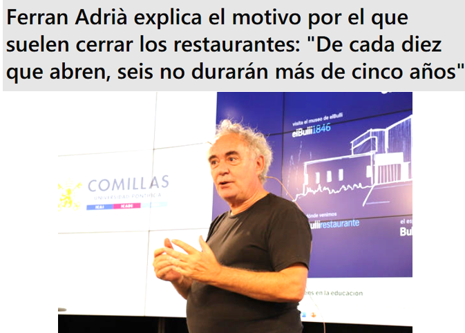 D’aquest reconegut cuiner universal, que ha marcat e innovat amb una cuina de sensacions, en el que va ser el seu restaurant “El Bulli” va sorgir aquesta reflexió sobre el món de la restauració adreçat, especialment, a aquells emprenedors que comencen; un espai on. molts dels cuiners actuals, s’hi han format o treballat,